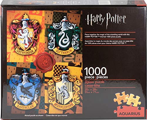 Ce puzzle Harry Potter est le cadeau idéal pour les fans de la saga. Avec 1000 pièces, vous pouvez reconstruire la magie du monde Harry Potter avec les boucliers des légendaires maisons de Poudlard : Gryffondor, Poufsouffle, Serdaigle et Serpentard. Le puzzle mesure 51 x 71 cm et est composé d’un matériau en carton durable qui ne reflète pas la lumière !